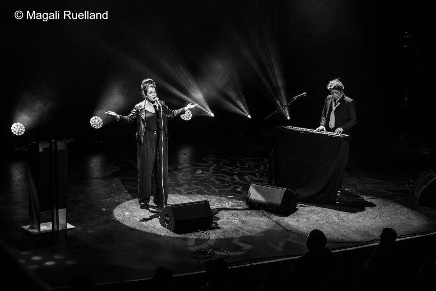 Prisco Langet accompagne les chansons de Klaire fait Grr de ses notes de clavier et de ses bidouillages d'ordinateur.